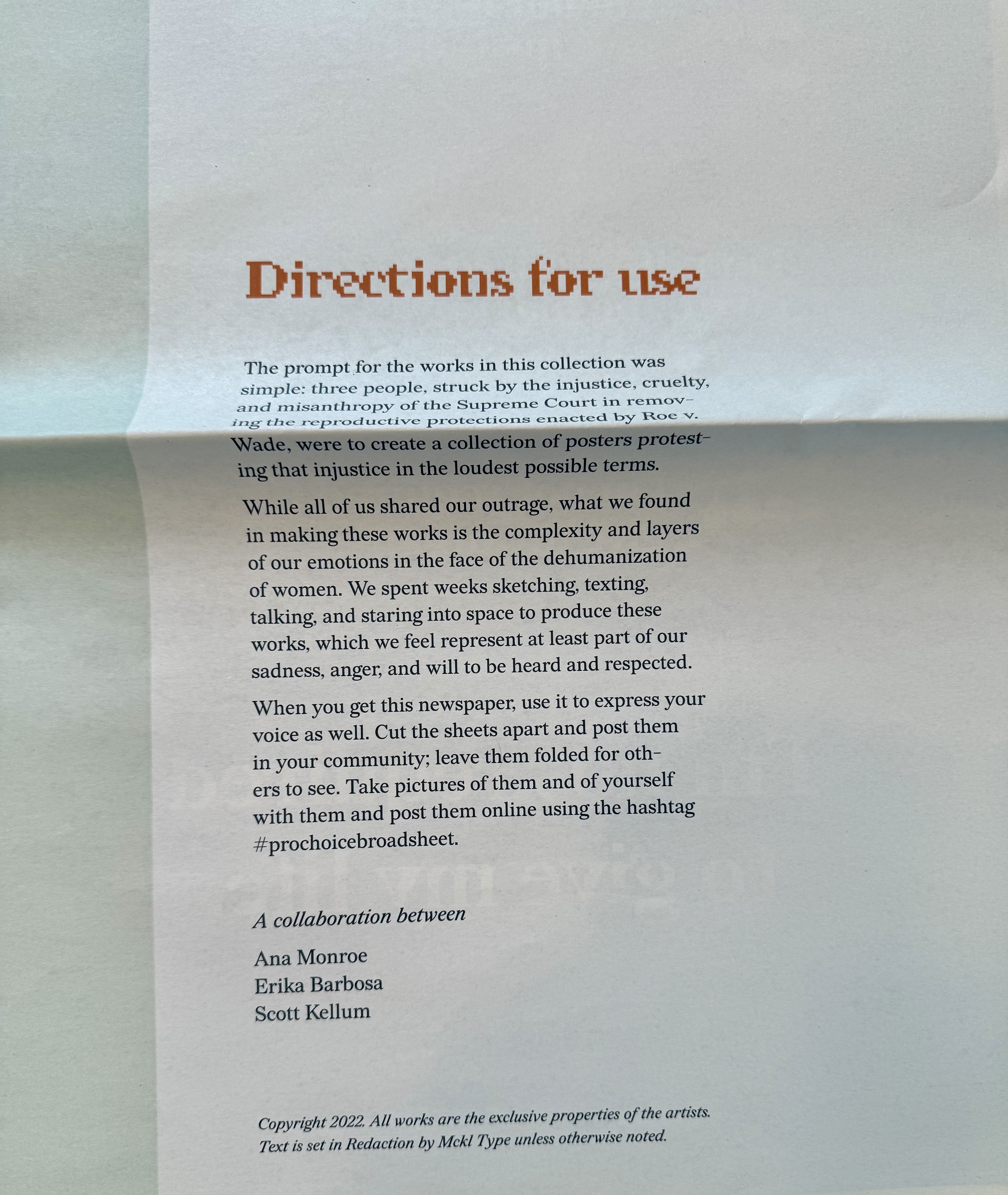 ZINE response to the overturning of Roe v. Wade