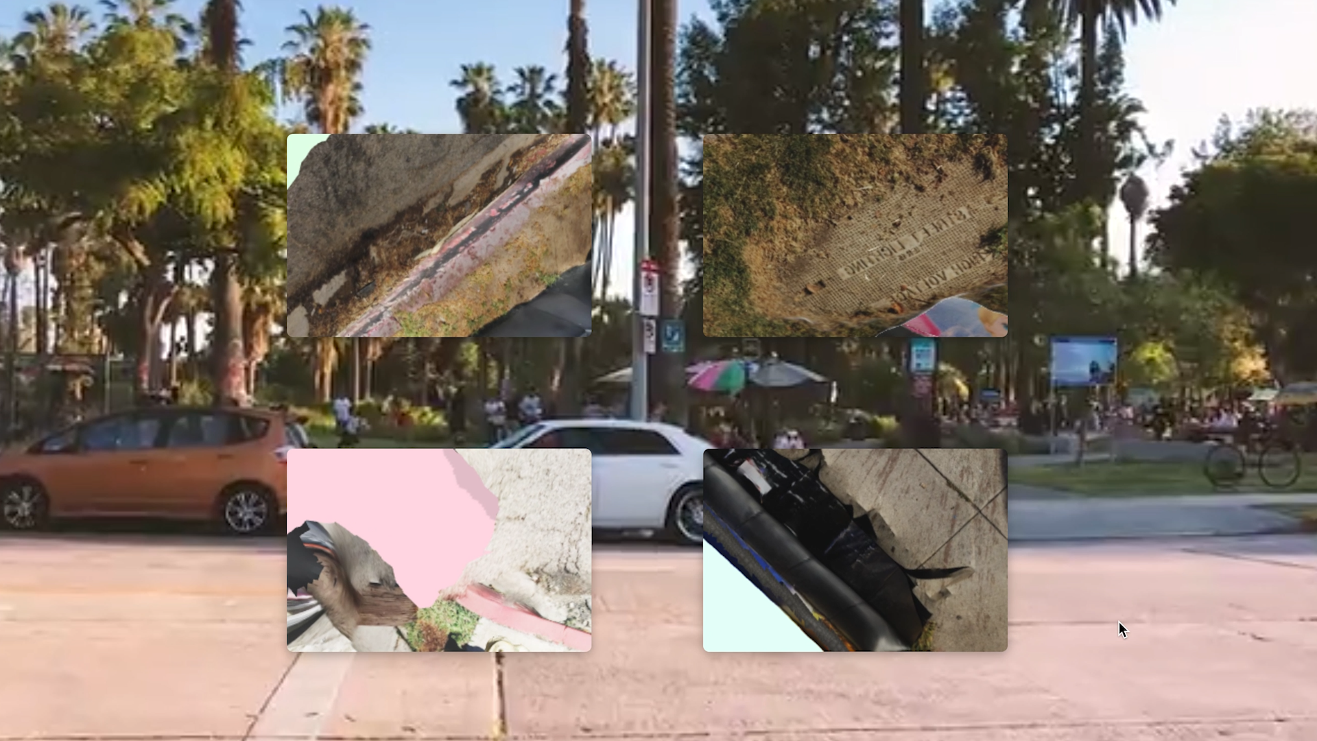 Unplanned Models is a material study of urbanism and media design. The video layers a late-night walk through Echo Park with a four-part grid of photogrammetry models — abandoned couches captured on sidewalks across Los Angeles. Each rendered object becomes a fragment of the city’s informal landscape, where discarded material and digital reconstruction meet. The work considers how everyday urban residue—objects left behind, scanned, and remade—reveals the tension between lived experience and the mediated surfaces through which the city is seen and understood.